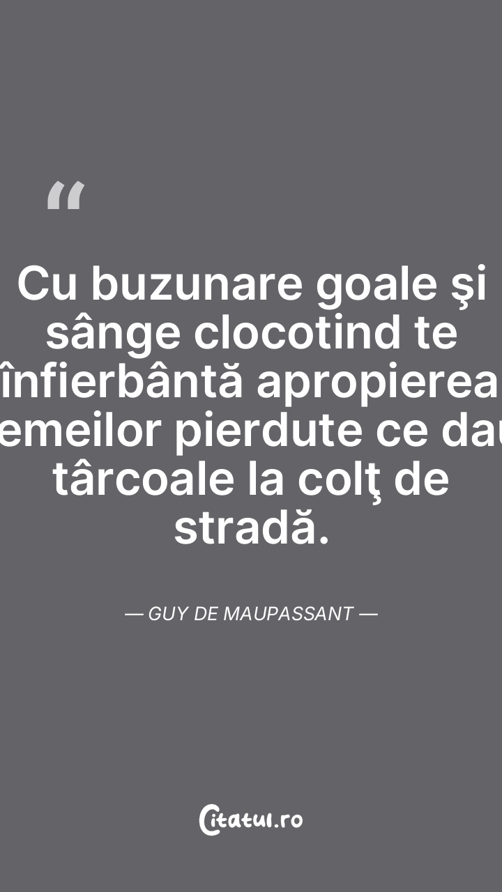 Cu buzunare goale şi sânge clocotind te înfierbântă apropierea femeilor pierdute ce dau târcoale la colţ de stradă. Guy de Maupassant
