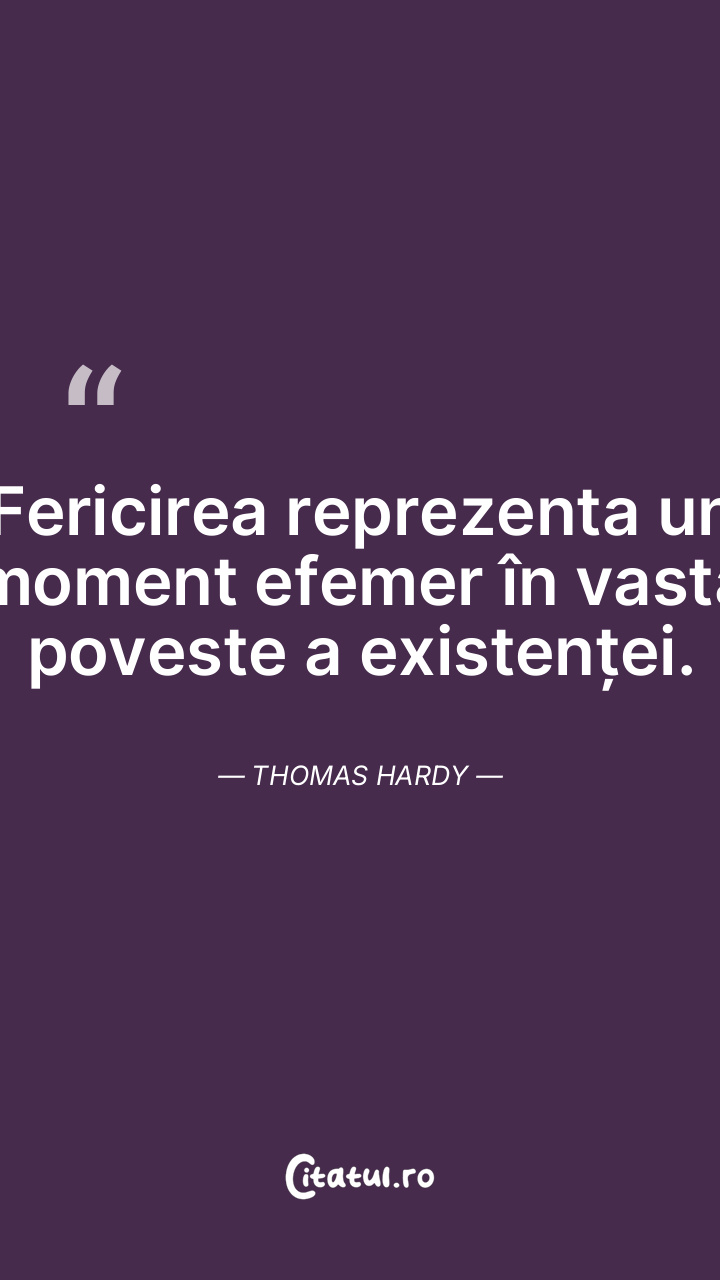 Fericirea reprezenta un moment efemer în vasta poveste a existenței. Thomas Hardy
