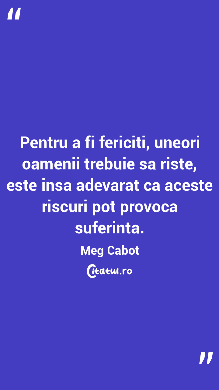 Pentru a fi fericiti, uneori oamenii trebuie sa riste, este insa adevarat ca aceste riscuri pot provoca suferinta. Meg Cabot