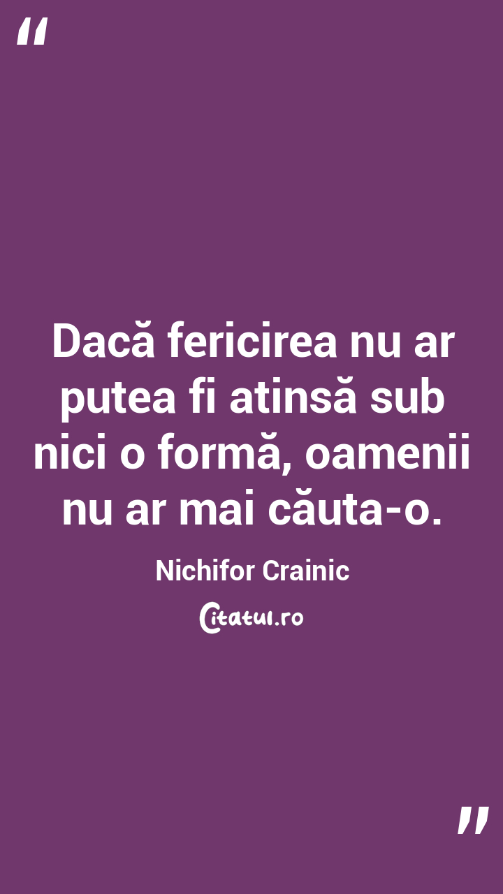 Dacă fericirea nu ar putea fi atinsă sub nici o formă, oamenii nu ar mai căuta-o. Nichifor Crainic