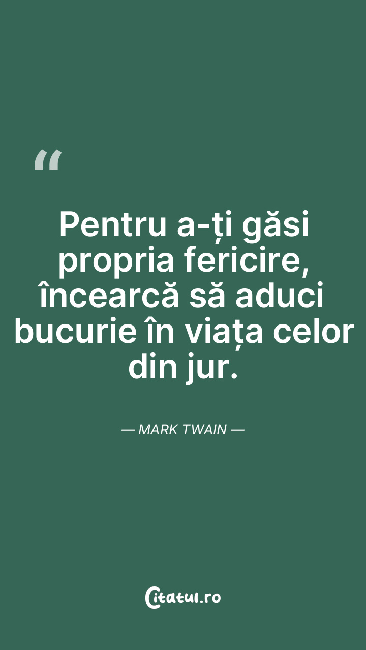 Pentru a-ți găsi propria fericire, încearcă să aduci bucurie în viața celor din jur. Mark Twain