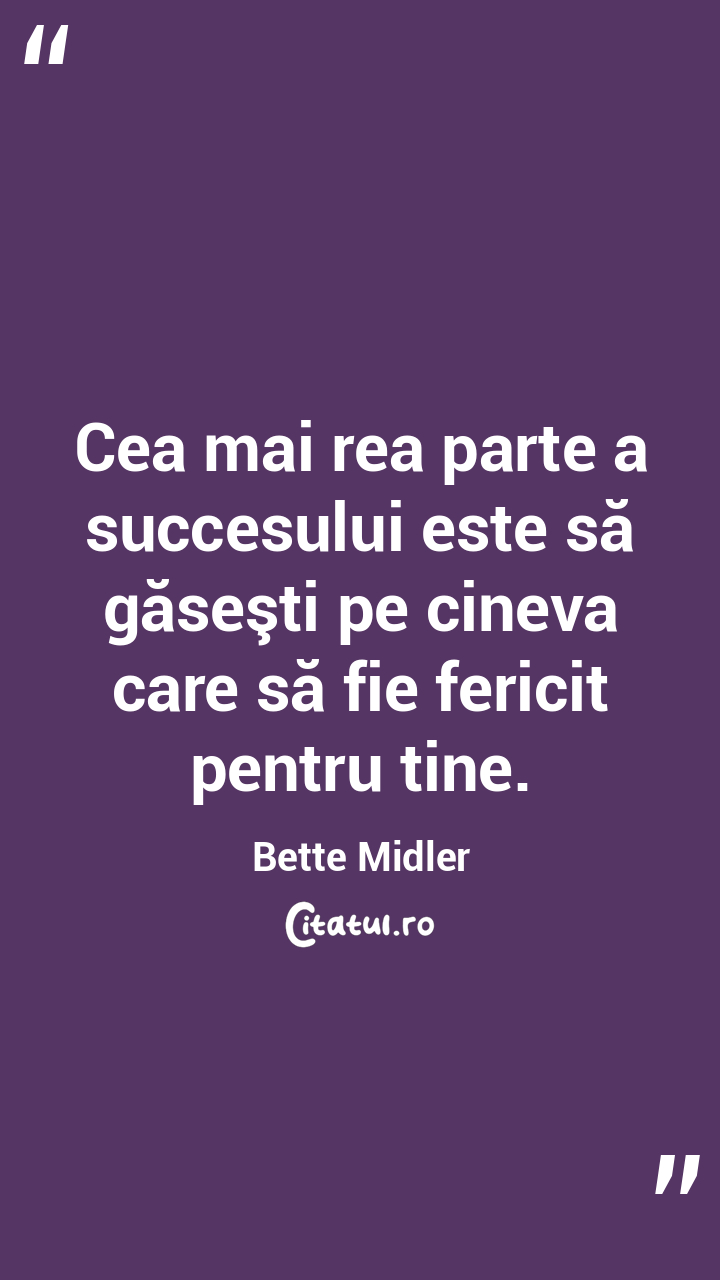 Cea mai rea parte a succesului este să găseşti pe cineva care să fie fericit pentru tine. Bette Midler
