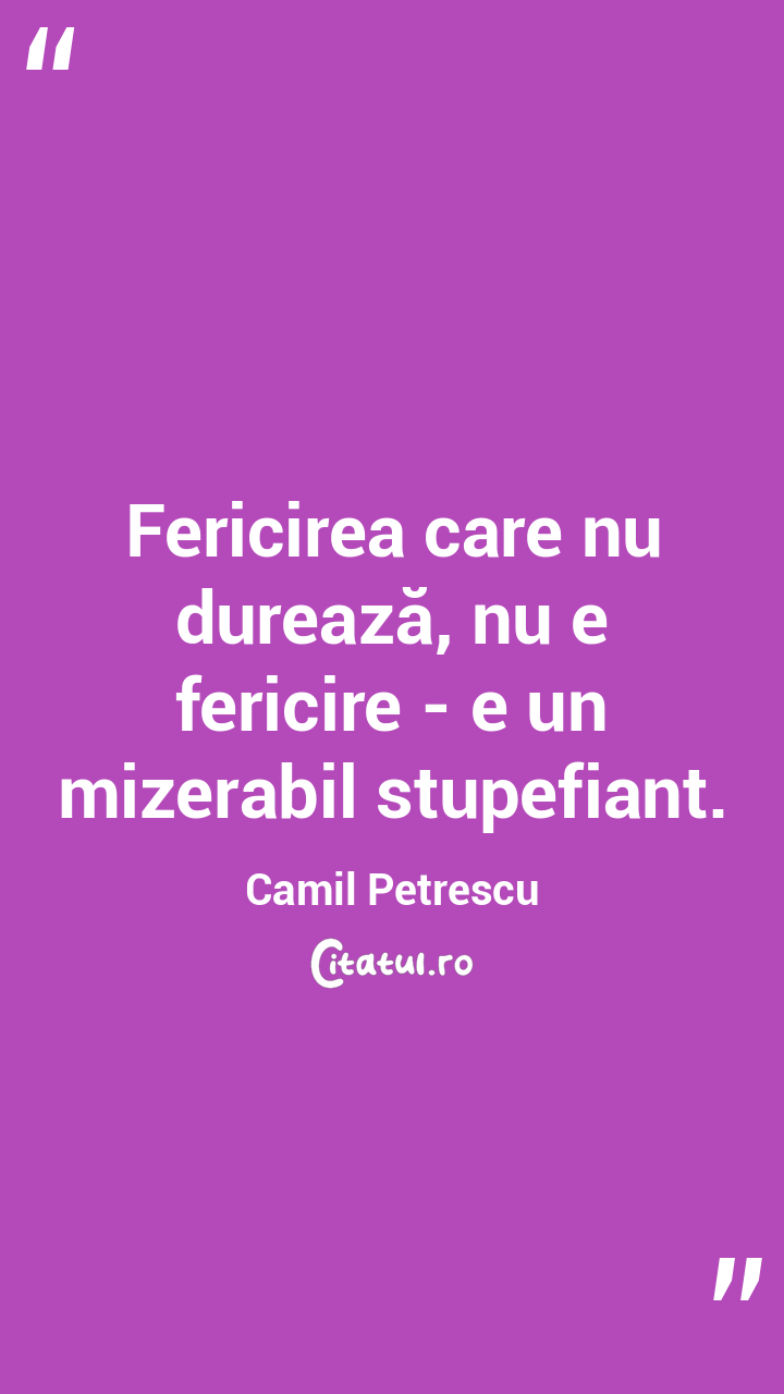 Fericirea care nu durează, nu e fericire - e un mizerabil stupefiant. Camil Petrescu