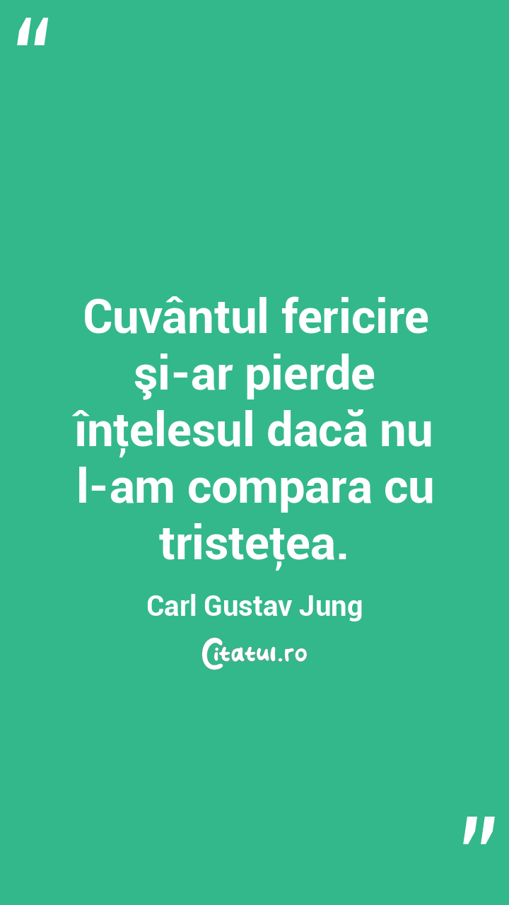 Cuvântul fericire şi-ar pierde înţelesul dacă nu l-am compara cu tristeţea. Carl Gustav Jung