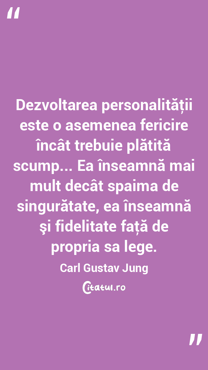 Dezvoltarea personalităţii este o asemenea fericire încât trebuie plătită scump... Ea înseamnă mai mult decât spaima de singurătate, ea înseamnă şi fidelitate faţă de propria sa lege. Carl Gustav Jung