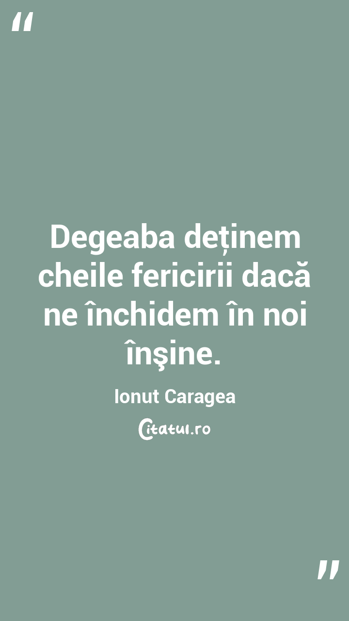 Degeaba deţinem cheile fericirii dacă ne închidem în noi înşine. Ionuț Caragea
