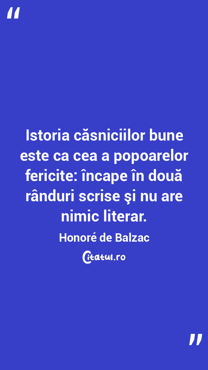 Istoria căsniciilor bune este ca cea a popoarelor fericite: încape în două rânduri scrise şi nu are nimic literar. Honoré de Balzac
