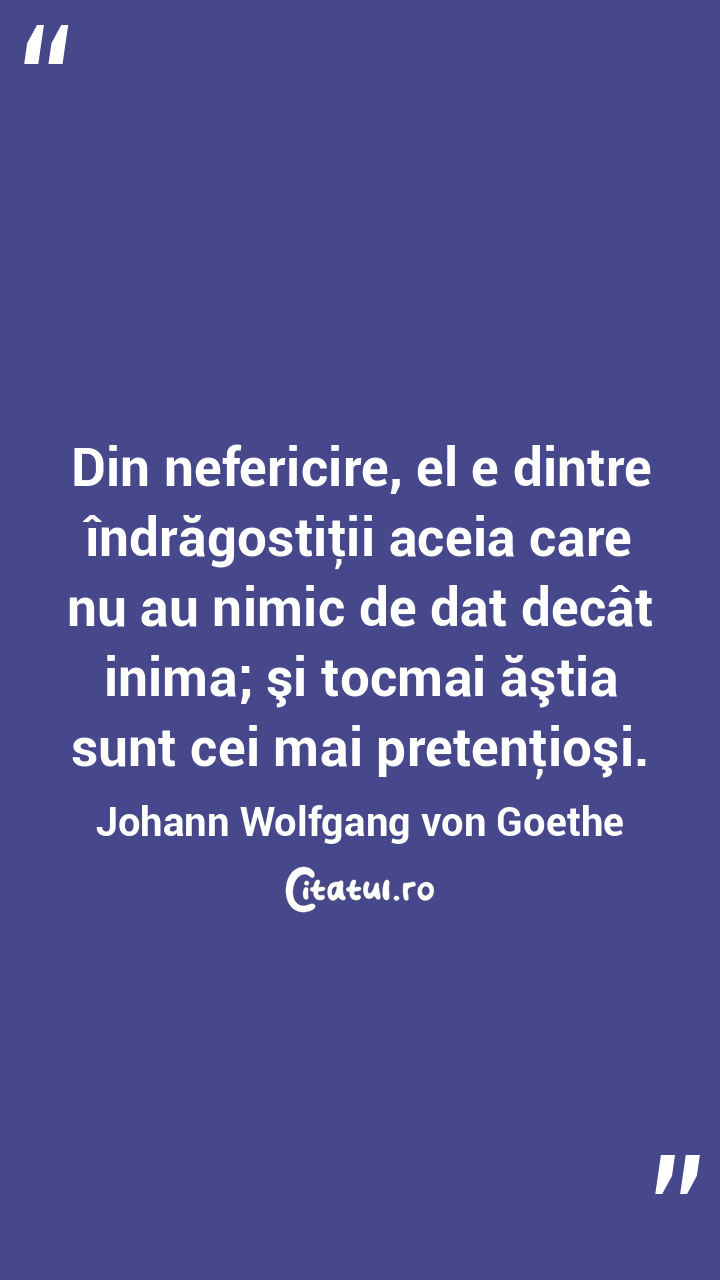 Din nefericire, el e dintre îndrăgostiţii aceia care nu au nimic de dat decât inima; şi tocmai ăştia sunt cei mai pretenţioşi. Johann Wolfgang von Goethe