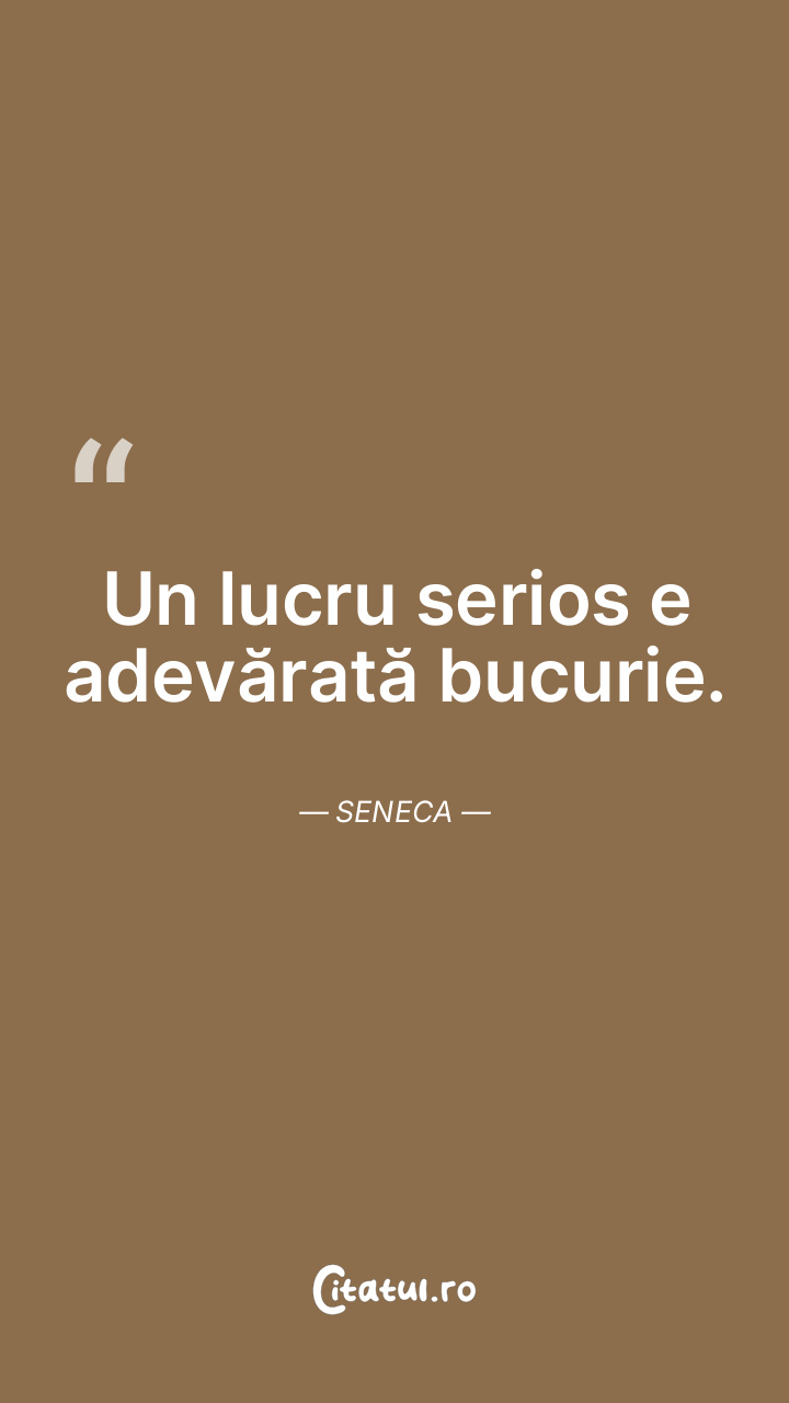 Un lucru serios e adevărată bucurie. Seneca