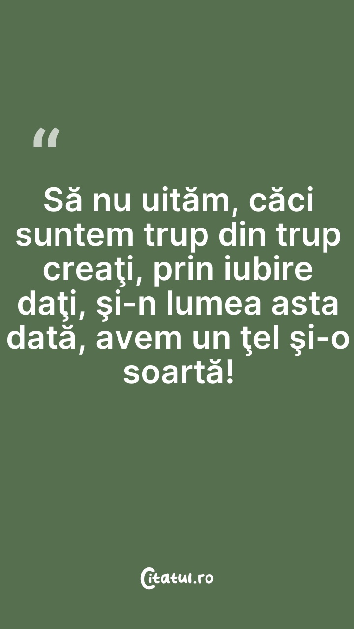 Să nu uităm, căci suntem trup din trup creaţi ... Citește tot citatul >