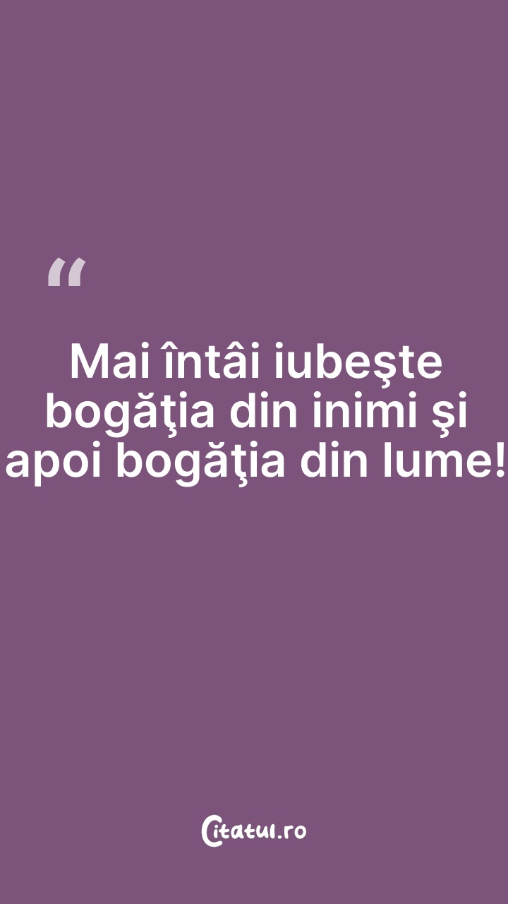 Mai întâi iubeşte bogăţia din inimi şi apoi b ... Citește tot citatul >