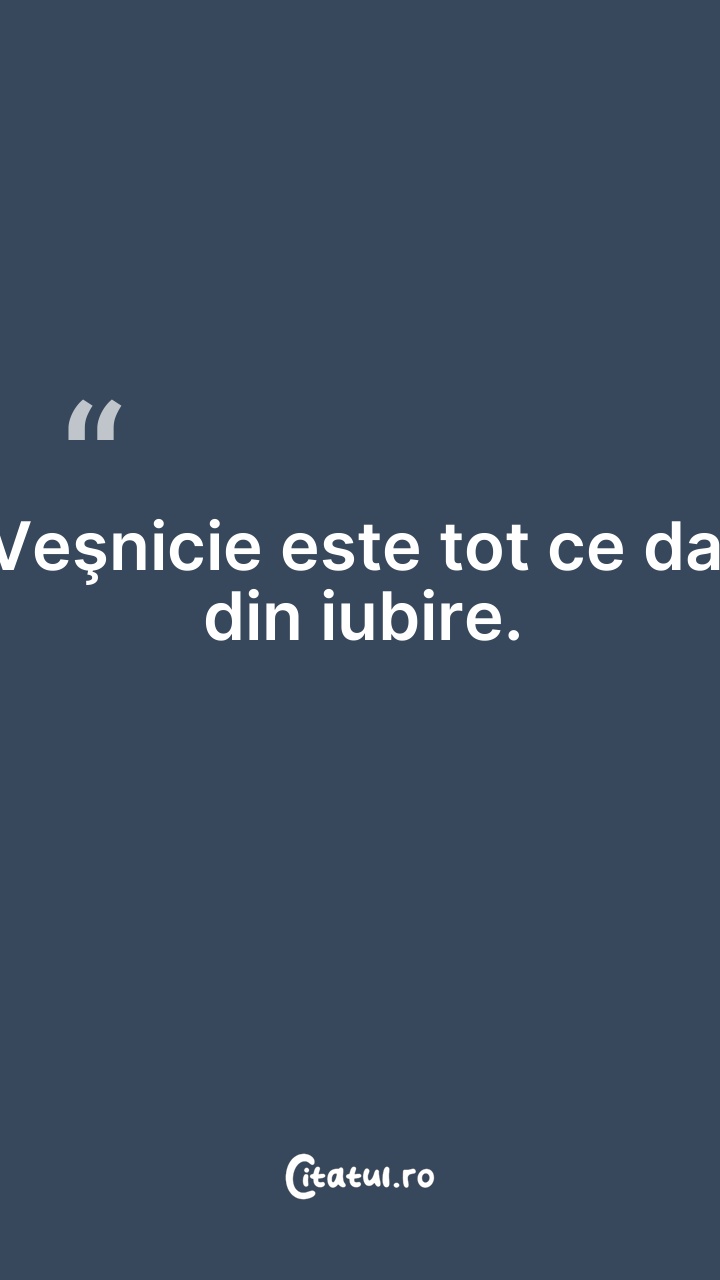 Veşnicie este tot ce dai din iubire.