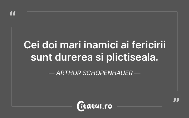 Cei doi mari inamici ai fericirii sunt durerea si plictiseala. Arthur Schopenhauer