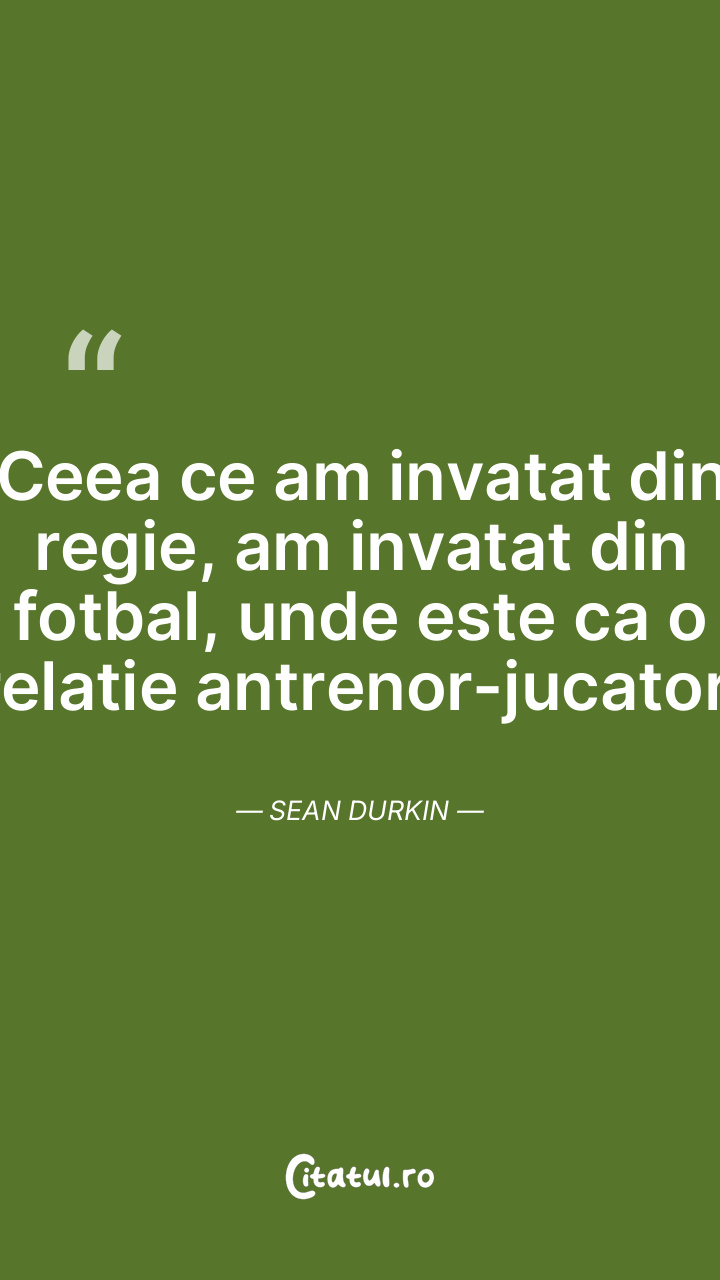 Ceea ce am invatat din regie, am invatat din fotbal, unde este ca o relatie antrenor-jucator. Sean Durkin