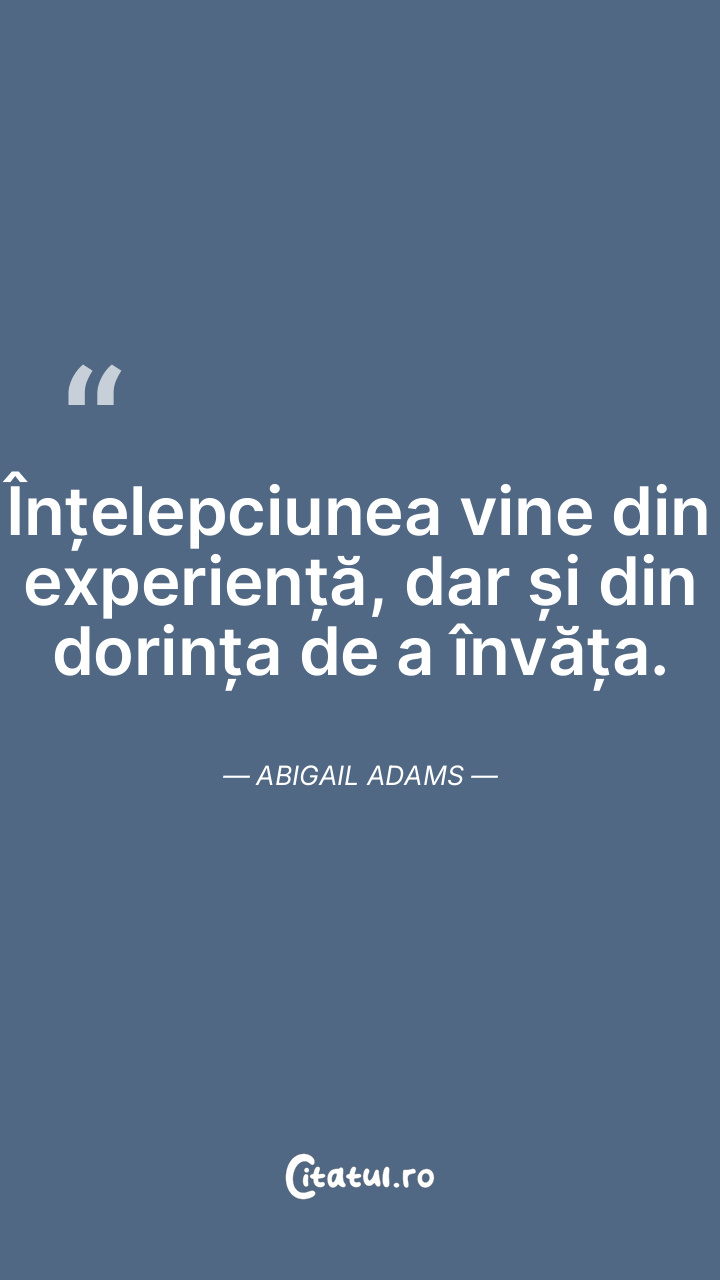 Înțelepciunea vine din experiență, dar și din dorința de a învăța. Abigail Adams