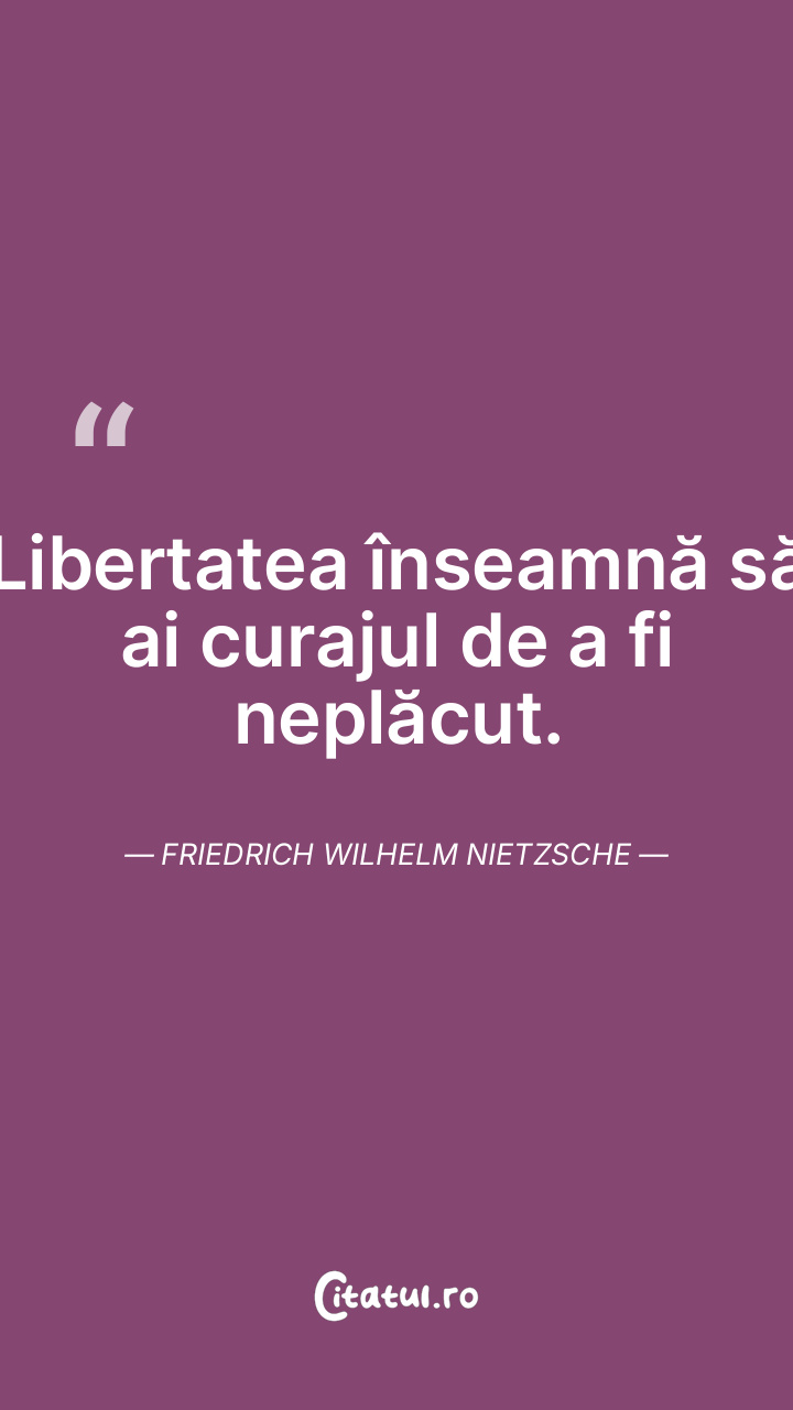 Libertatea înseamnă să ai curajul de a fi neplăcut. Friedrich Wilhelm Nietzsche