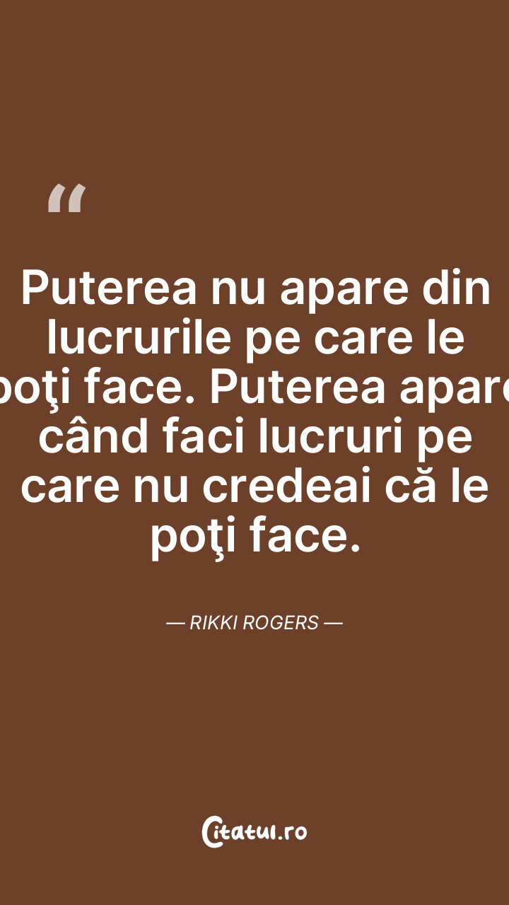 Puterea nu apare din lucrurile pe care le poţi face. Puterea apare când faci lucruri pe care nu credeai că le poţi face. Rikki Rogers