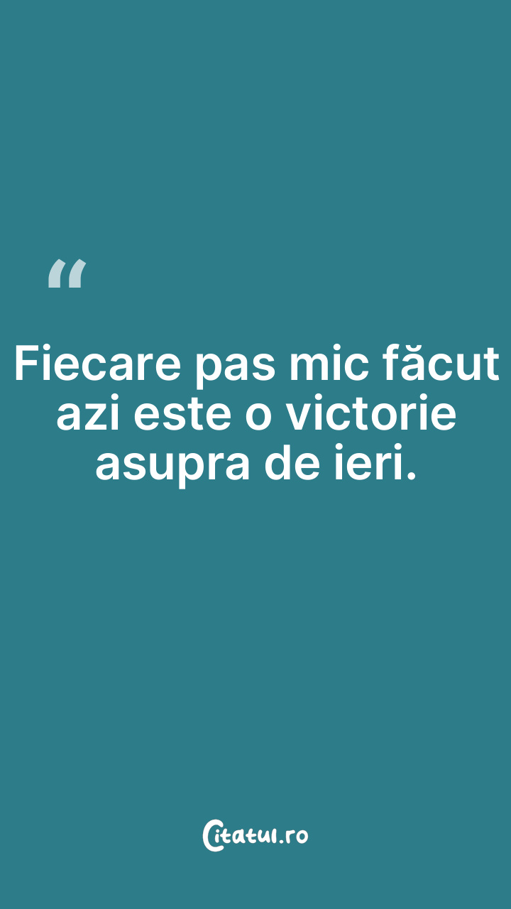 Fiecare pas mic făcut azi este o victorie asupra de ieri.
