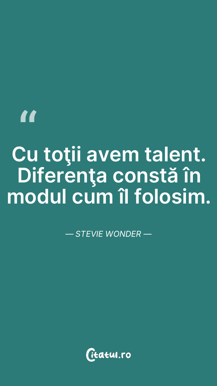 Cu toţii avem talent. Diferenţa constă în modul cum îl folosim. Stevie Wonder