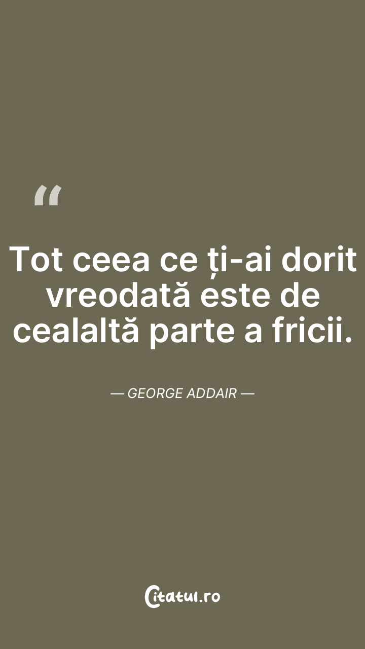 Tot ceea ce ți-ai dorit vreodată este de cealaltă parte a fricii. George Addair