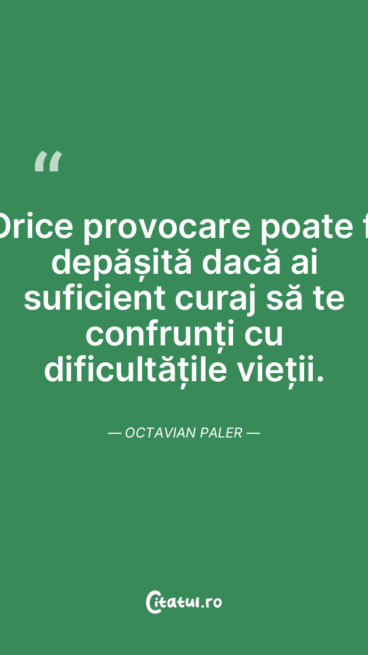 Orice provocare poate fi depășită dacă ai suficient curaj să te confrunți cu dificultățile vieții. Octavian Paler