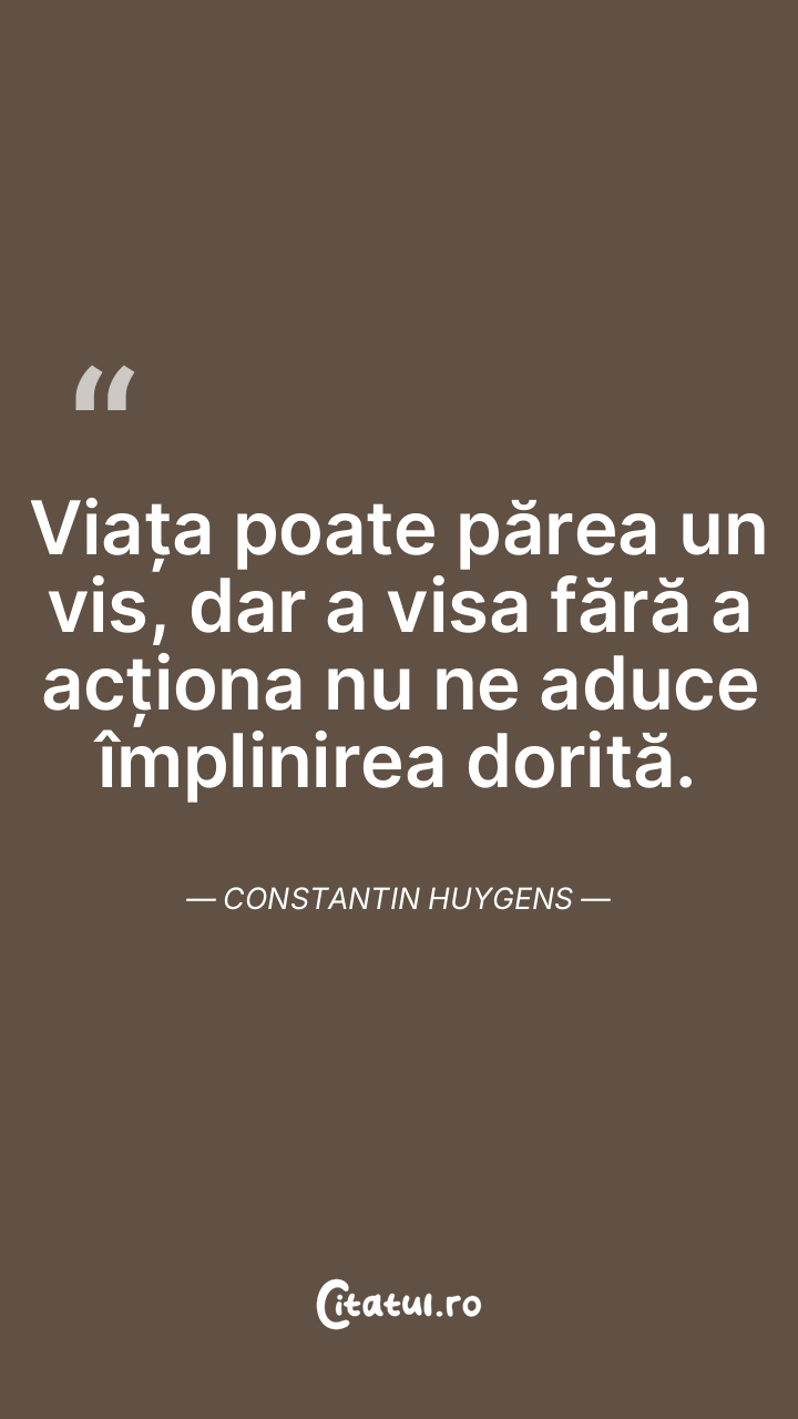 Viața poate părea un vis, dar a visa fără a acționa nu ne aduce împlinirea dorită. Constantin Huygens