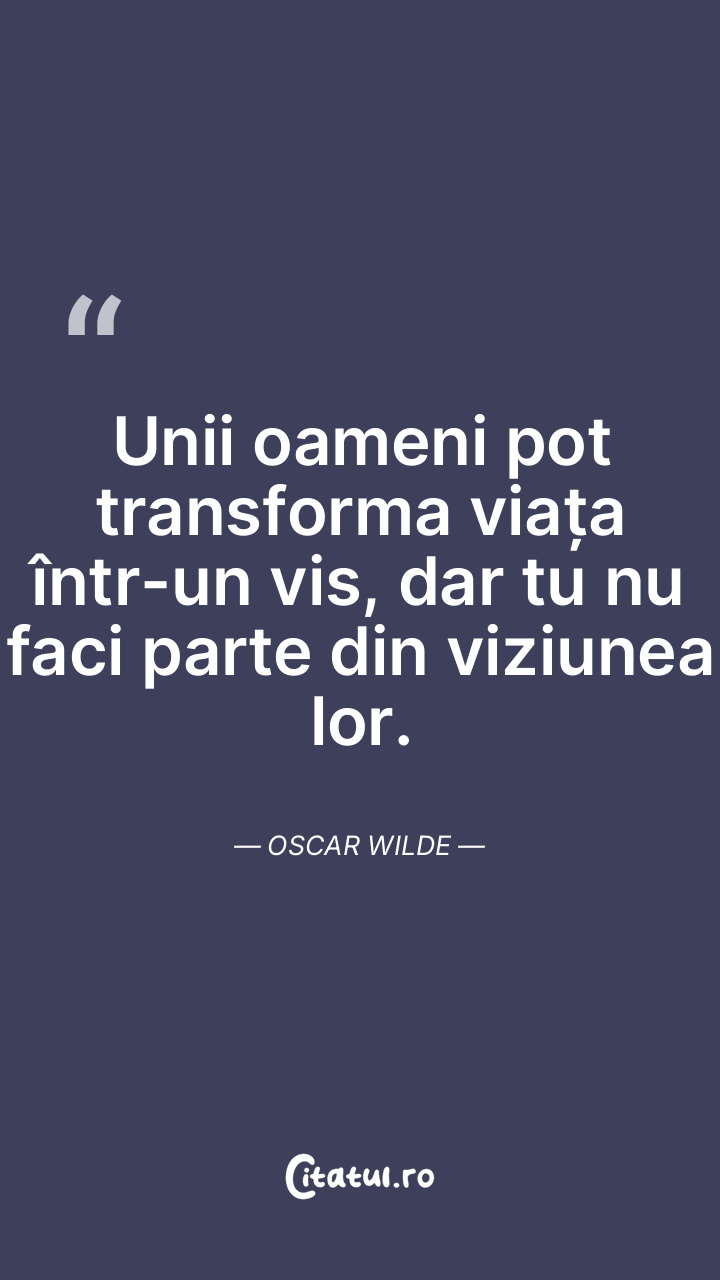 Unii oameni pot transforma viața într-un vis, dar tu nu faci parte din viziunea lor. Oscar Wilde