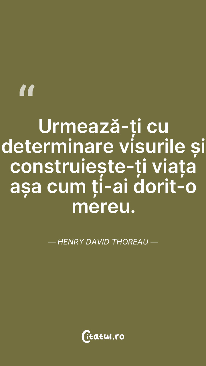 Urmează-ți cu determinare visurile și construiește-ți viața așa cum ți-ai dorit-o mereu. Henry David Thoreau