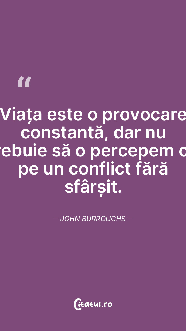Viața este o provocare constantă, dar nu trebuie să o percepem ca pe un conflict fără sfârșit. John Burroughs