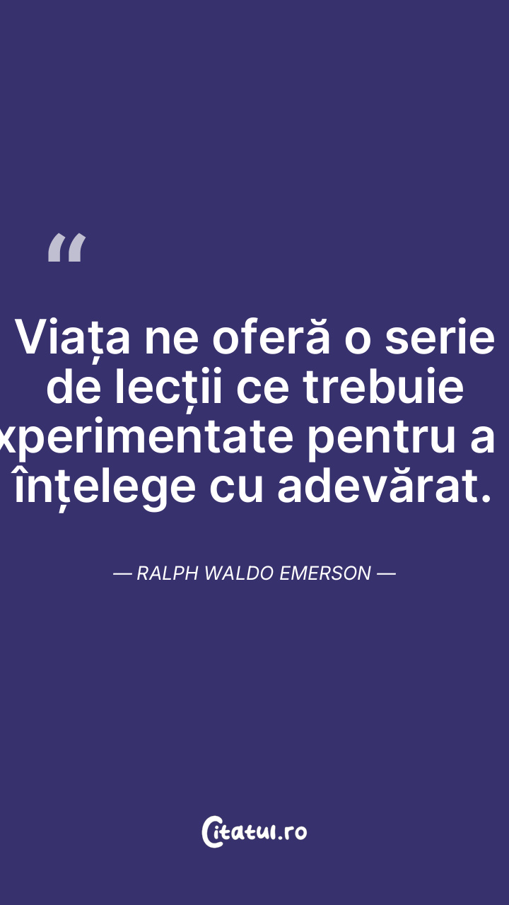Viața ne oferă o serie de lecții ce trebuie experimentate pentru a le înțelege cu adevărat. Ralph Waldo Emerson