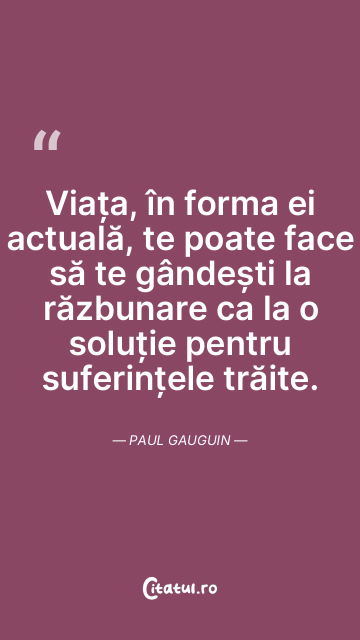 Viața, în forma ei actuală, te poate face să te gândești la răzbunare ca la o soluție pentru suferințele trăite. Paul Gauguin
