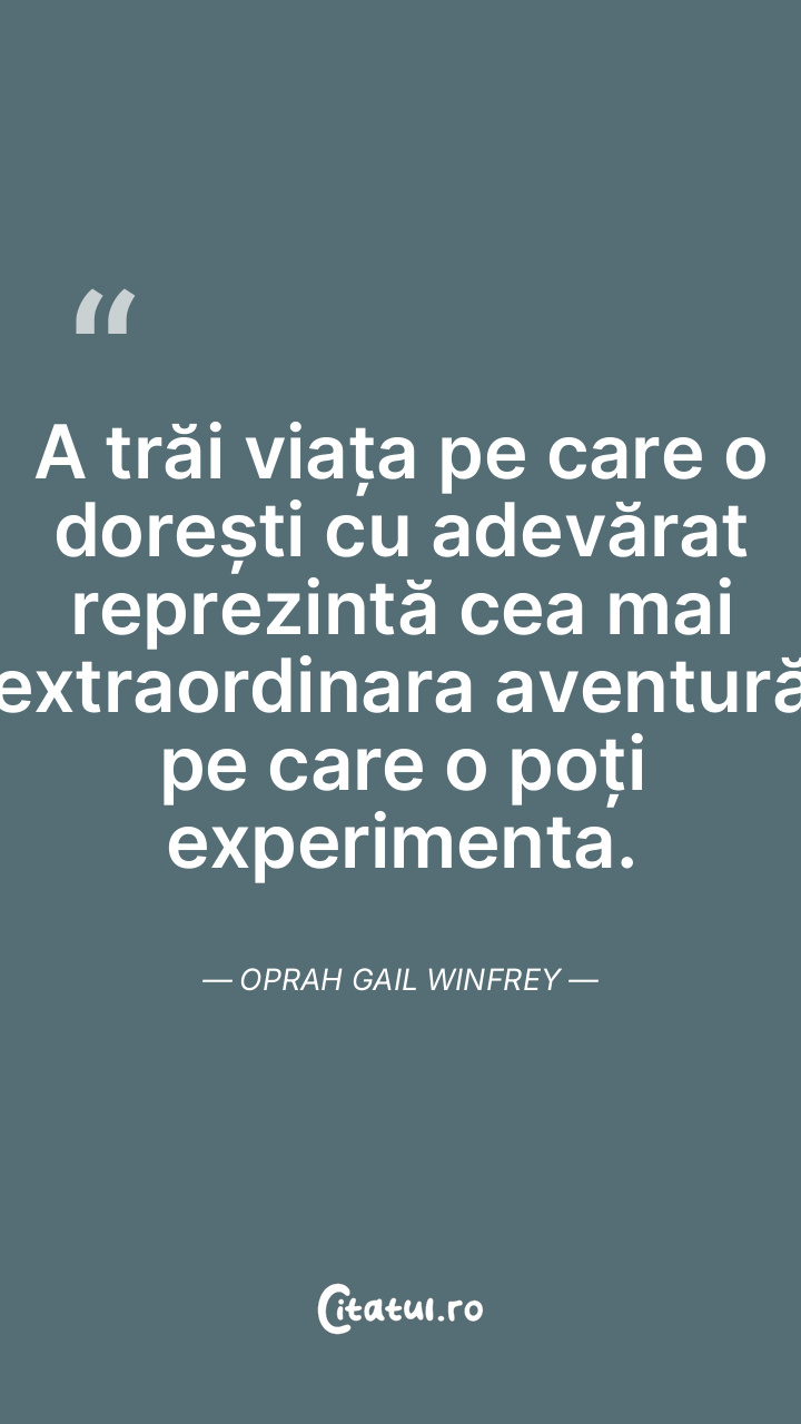 A trăi viața pe care o dorești cu adevărat reprezintă cea mai extraordinara aventură pe care o poți experimenta. Oprah Gail Winfrey