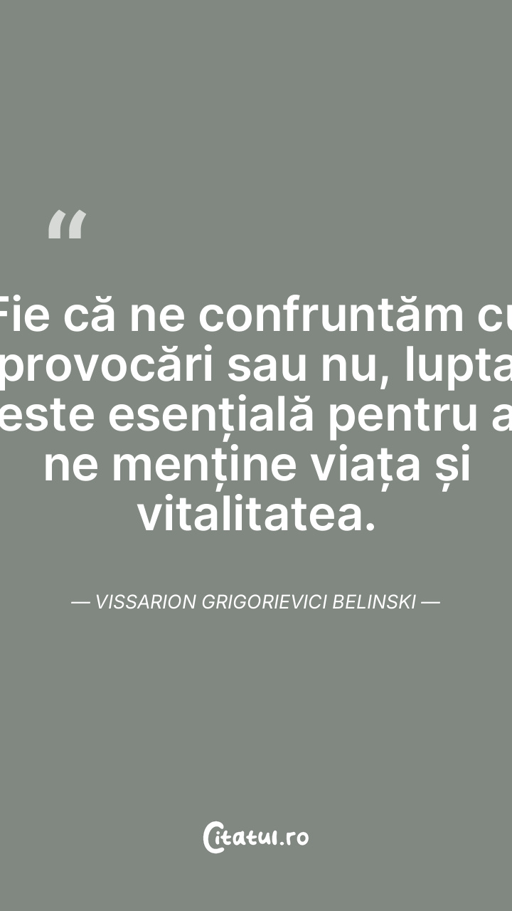 Fie că ne confruntăm cu provocări sau nu, lupta este esențială pentru a ne menține viața și vitalitatea. Vissarion Grigorievici Belinski
