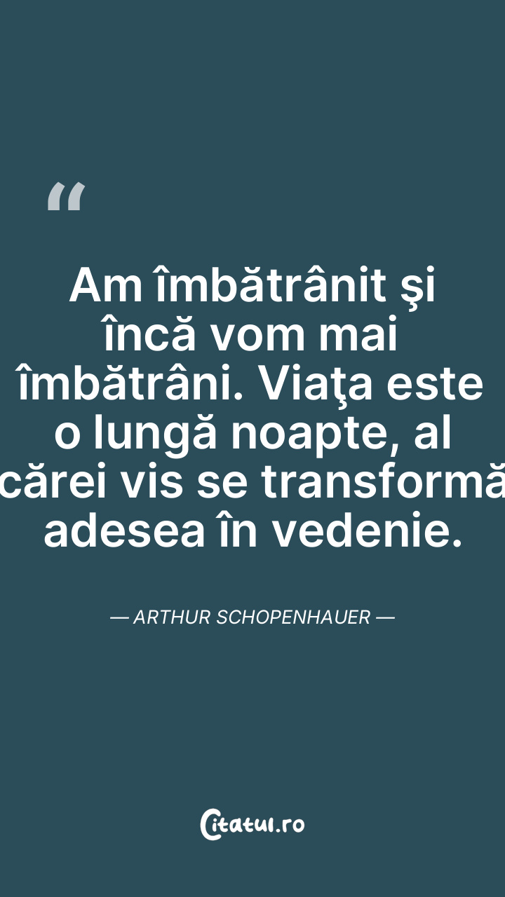 Am îmbătrânit şi încă vom mai îmbătrâni. Viaţa este o lungă noapte, al cărei vis se transformă adesea în vedenie. Arthur Schopenhauer