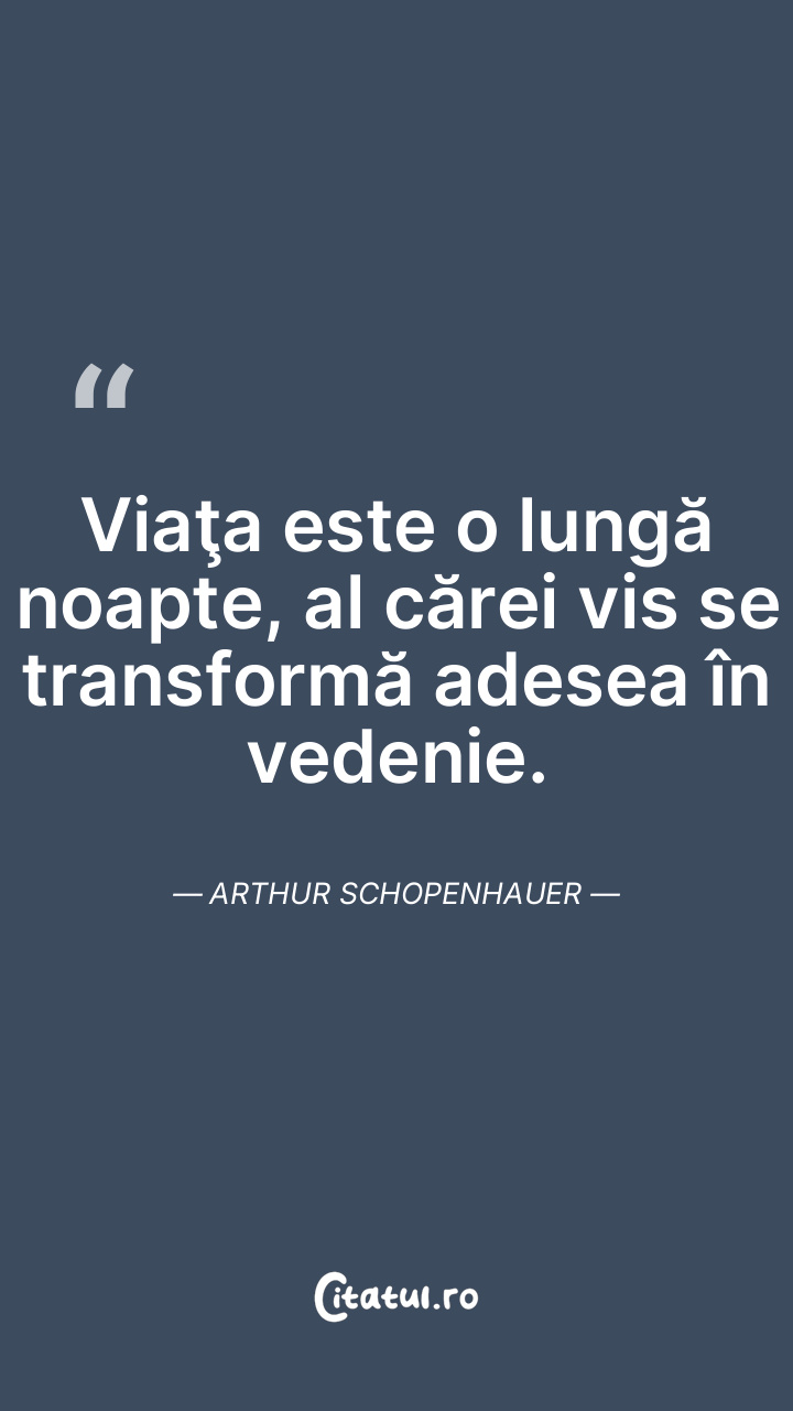 Viaţa este o lungă noapte, al cărei vis se transformă adesea în vedenie. Arthur Schopenhauer