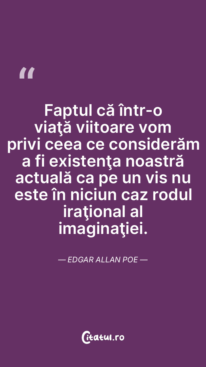 Faptul că într-o viaţă viitoare vom privi ceea ce considerăm a fi existenţa noastră actuală ca pe un vis nu este în niciun caz rodul iraţional al imaginaţiei. Edgar Allan Poe