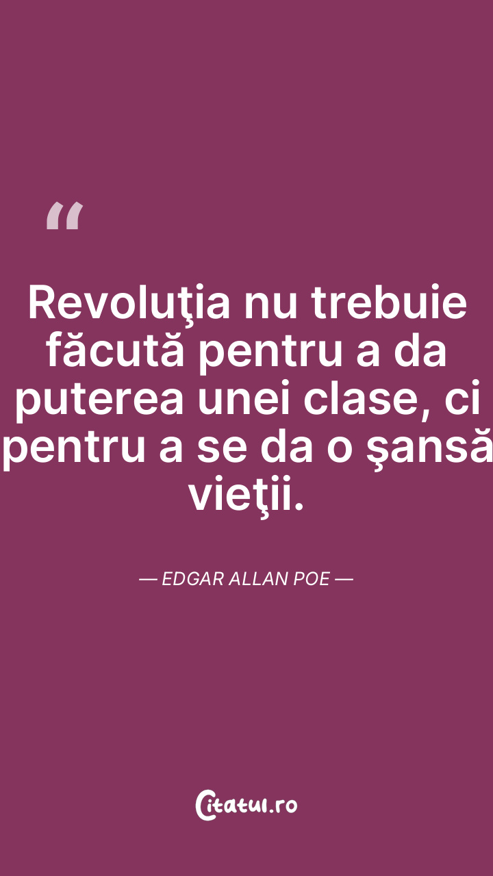 Revoluţia nu trebuie făcută pentru a da puterea unei clase, ci pentru a se da o şansă vieţii. Edgar Allan Poe