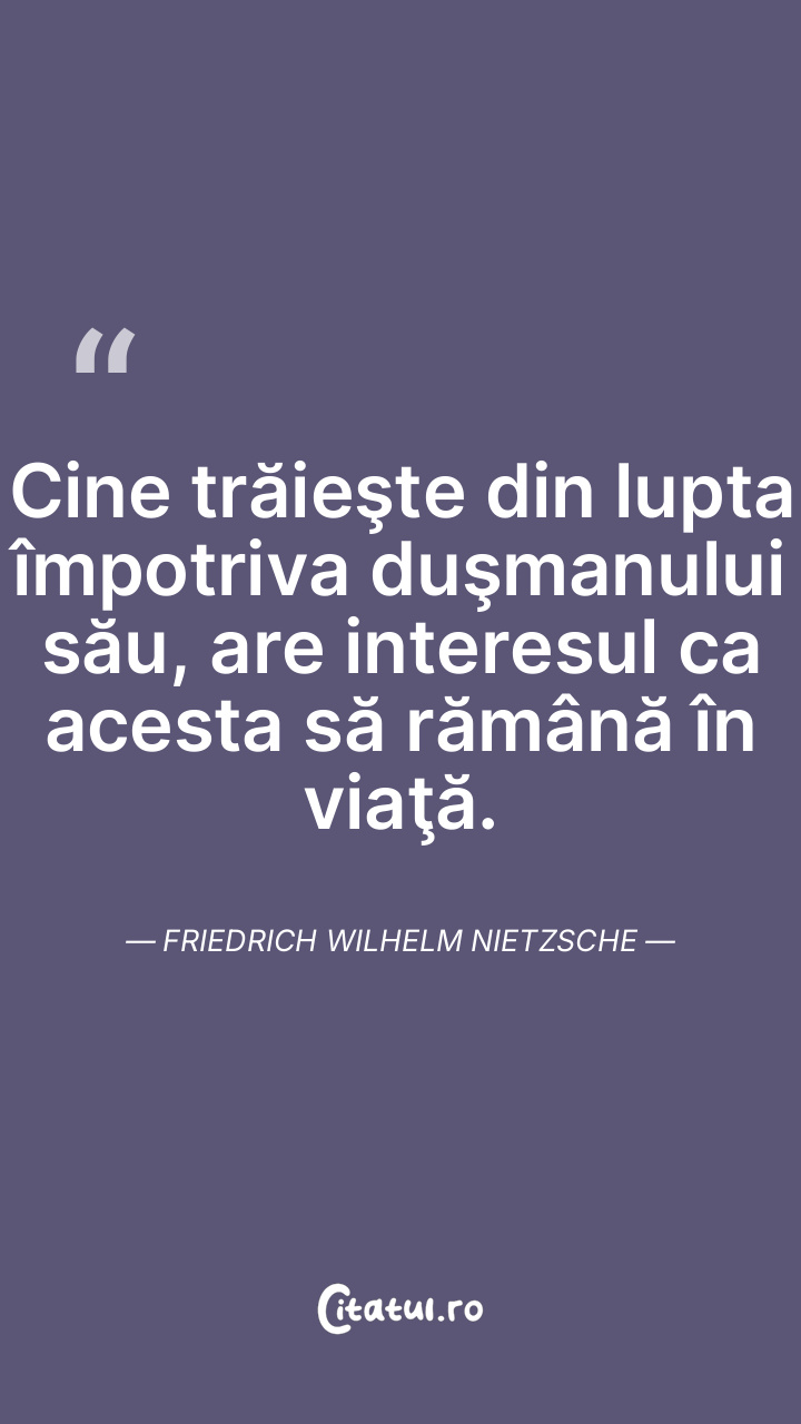 Cine trăieşte din lupta împotriva duşmanului său, are interesul ca acesta să rămână în viaţă. Friedrich Wilhelm Nietzsche