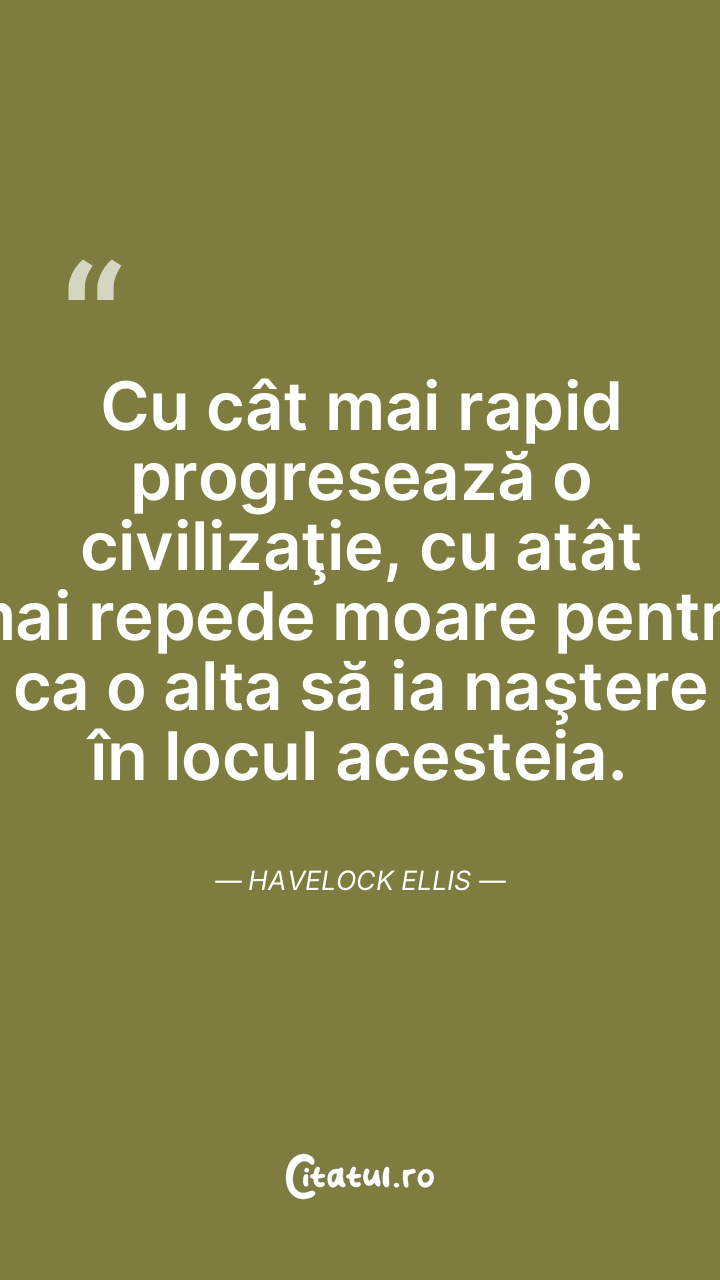 Cu cât mai rapid progresează o civilizaţie, cu atât mai repede moare pentru ca o alta să ia naştere în locul acesteia. Havelock Ellis