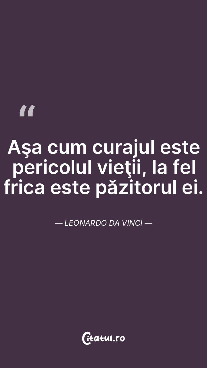Aşa cum curajul este pericolul vieţii, la fel frica este păzitorul ei. Leonardo da Vinci