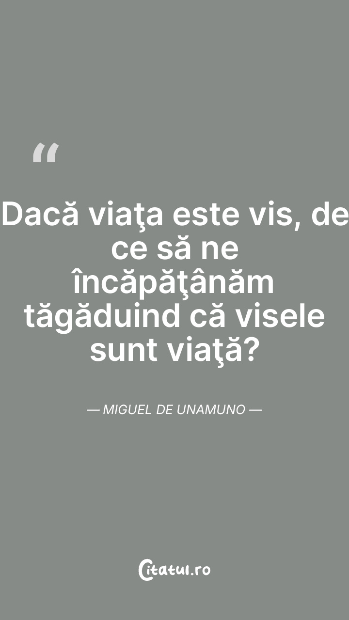 Dacă viaţa este vis, de ce să ne încăpăţânăm tăgăduind că visele sunt viaţă? Miguel de Unamuno