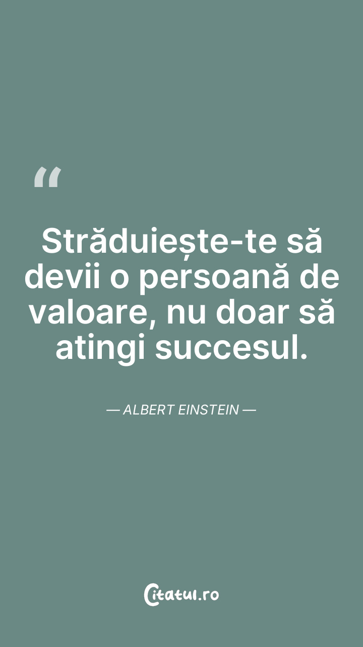 Străduiește-te să devii o persoană de valoare, nu doar să atingi succesul. Albert Einstein