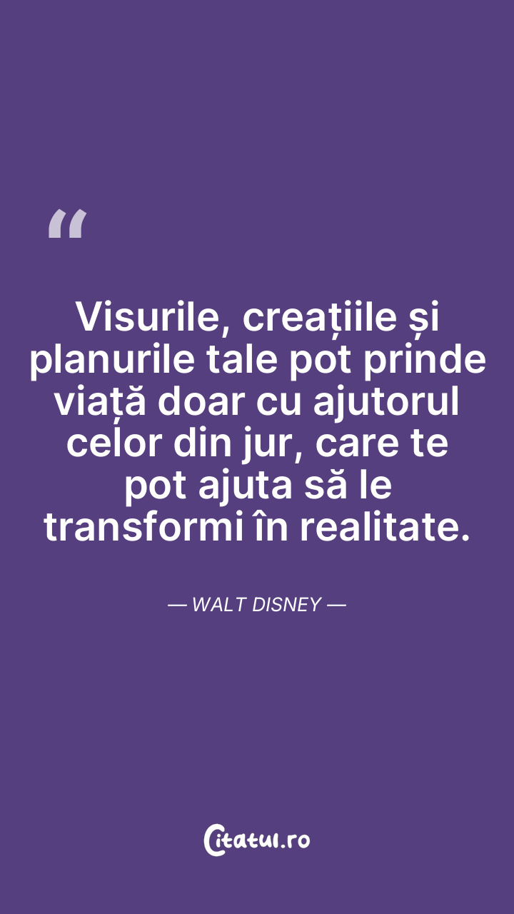 Visurile, creațiile și planurile tale pot prinde viață doar cu ajutorul celor din jur, care te pot ajuta să le transformi în realitate. Walt Disney