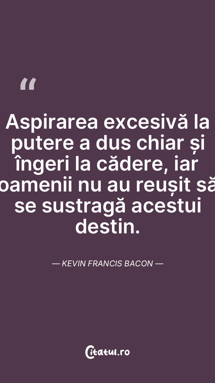 Aspirarea excesivă la putere a dus chiar și îngeri la cădere, iar oamenii nu au reușit să se sustragă acestui destin. Kevin Francis Bacon