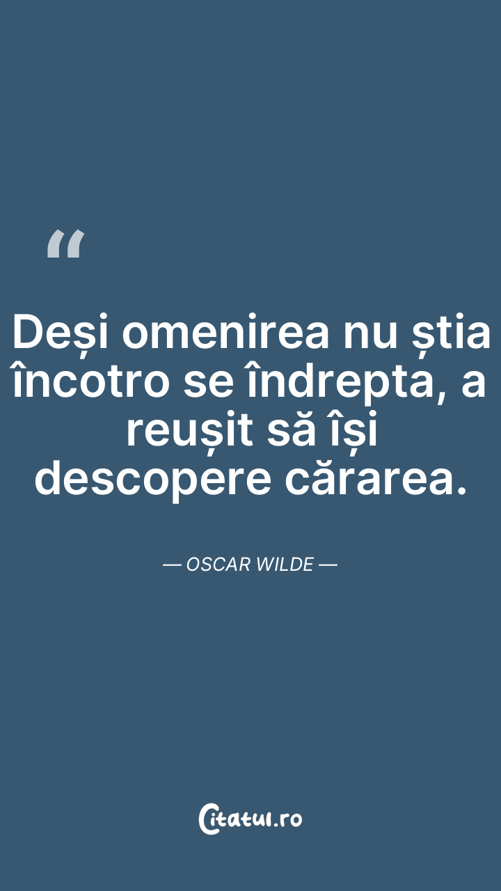 Deși omenirea nu știa încotro se îndrepta, a reușit să își descopere cărarea. Oscar Wilde