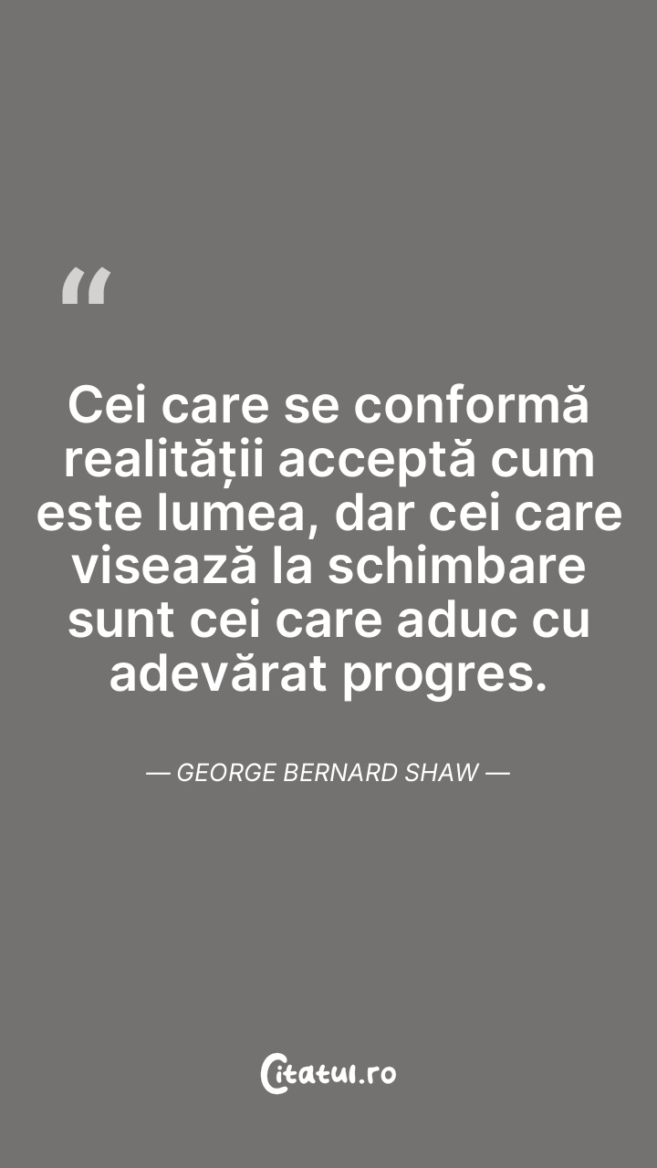 Cei care se conformă realității acceptă cum este lumea, dar cei care visează la schimbare sunt cei care aduc cu adevărat progres. George Bernard Shaw