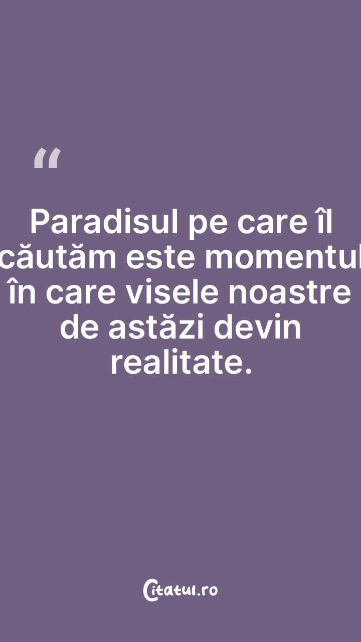 Paradisul pe care îl căutăm este momentul în care visele noastre de astăzi devin realitate.