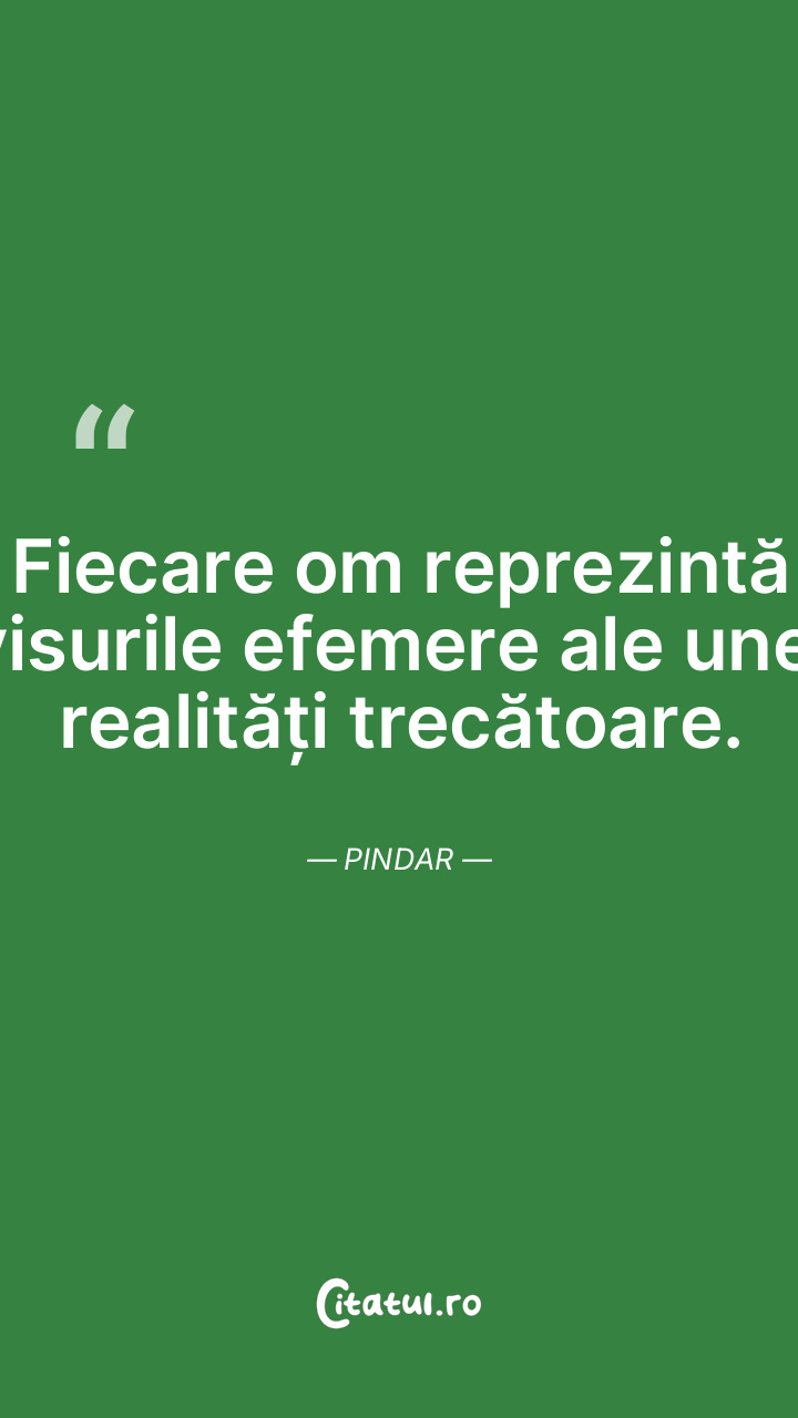 Fiecare om reprezintă visurile efemere ale unei realități trecătoare. Pindar