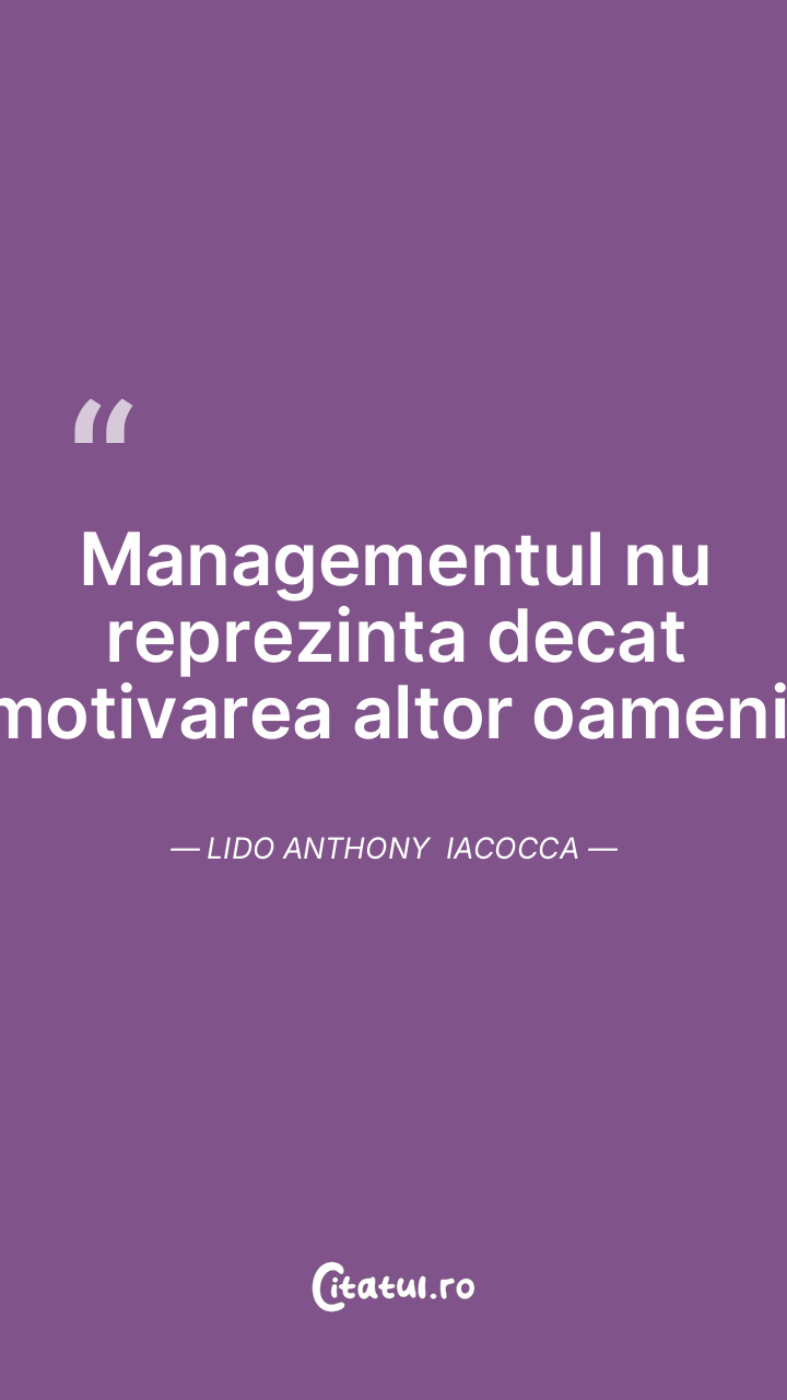 Managementul nu reprezinta decat motivarea altor oameni. Lido Anthony Iacocca