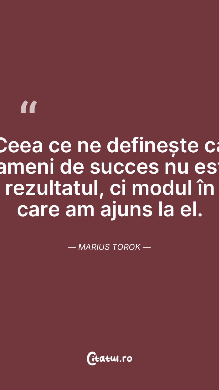 Ceea ce ne definește ca oameni de succes nu este rezultatul, ci modul în care am ajuns la el. Marius Torok